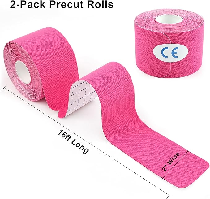 MUEUSS Kinesiology Tape Elastic Cotton Athletic Tape Precut Strips,Waterproof Tape for Protects Muscles,Knees,Shoulders Plantar Fasciitis Pain Relief,Pregnancy Belly Tape (2rolls Pink&Beige)