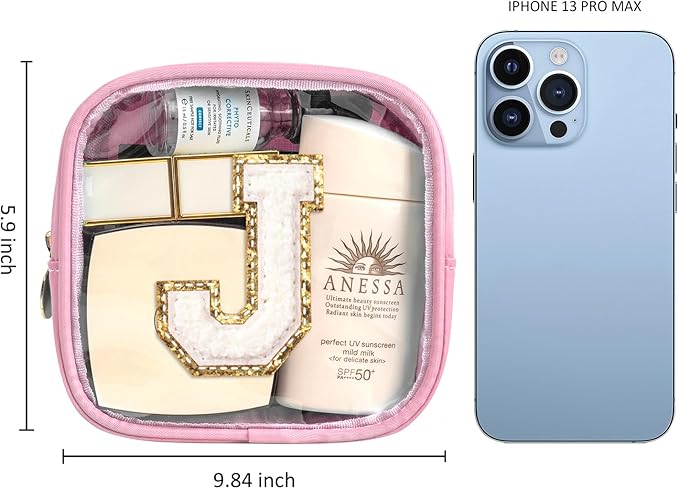 - Personalized Initial Letter Clear Makeup Bag Organizer:Preppy makeup bag boasts a gold glitter chenille patch that is not only stylish but also skin-friendly and comfortable to touch.It's your exclusive makeup bag.You can organizing various items such as cosmetics, lipsticks, hair accessories, snacks, and jewelry. They also work well as coin purses, providing convenient storage for daily use.