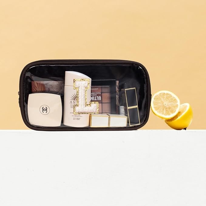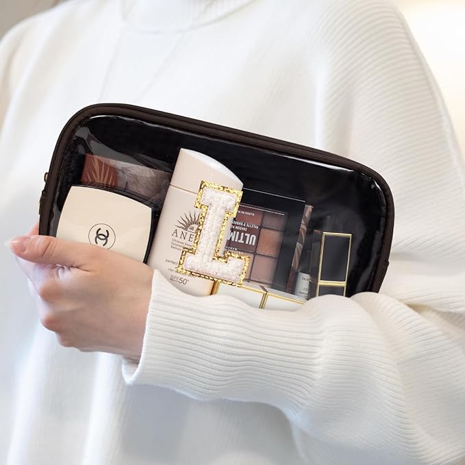 - Personalized Initial Makeup Bag for Purse:Preppy makeup bag boasts a gold glitter chenille patch that is not only stylish but also skin-friendly and comfortable to touch.It's your exclusive makeup bag.You can organizing various items such as cosmetics, lipsticks, hair accessories, snacks, and jewelry. They also work well as coin purses, providing convenient storage for daily use.