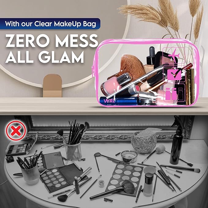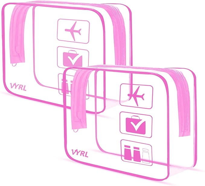 - ๐ฅ๐ง๐ฆ๐-๐๐ฝ๐ฝ๐ฟ๐ผ๐๐ฒ๐ฑ: VYRL 8.46 x 6.3 x 1.18 inches clear travel bags for toiletries strictly adhere to the TSA 3-1-1 liquids rule. The quart-size transparent clear cosmetic bag design ensures a swift pass through airport security & easily spot your essentials in a breeze.
