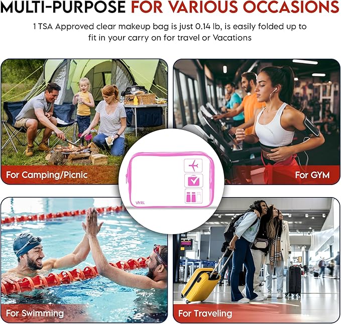 - ๐ฅ๐ฉ๐ฒ๐ฟ๐๐ฎ๐๐ถ๐น๐ฒ ๐๐ผ๐บ๐ฝ๐ฎ๐ป๐ถ๐ผ๐ป: Vyrl TSA quart size travel bag efficiently holds travel essentials, saving space. Organize bottles, makeup, toiletries, and more for travel, camping, or gym. Vyrl Clear Pouches are also function as medicine organizers, tool pouches, or toy storage