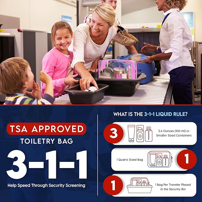 - ๐ฅ๐๐ฎ๐๐-๐ง๐ฟ๐ฎ๐๐ฒ๐น ๐๐๐๐ฒ๐ป๐๐ถ๐ฎ๐น: TSA toiletry bag weighing 0.31 lbs designed for effortless portability, lightweight that allows you to carry essentials on the go. This makeup bag clear ideal as a gift for friends & family. Wash with soap and water, ensure proper ventilation for odor elimination.