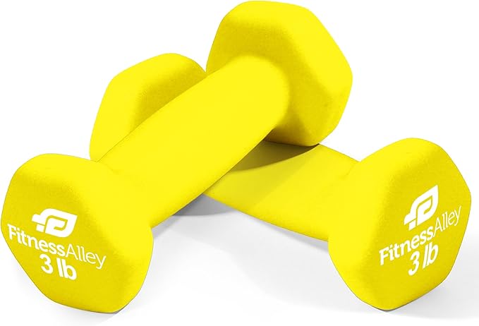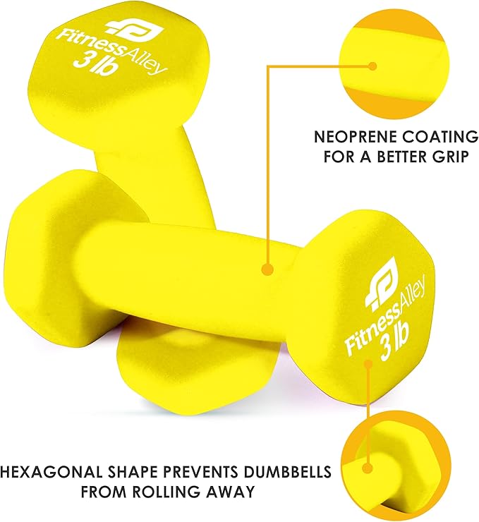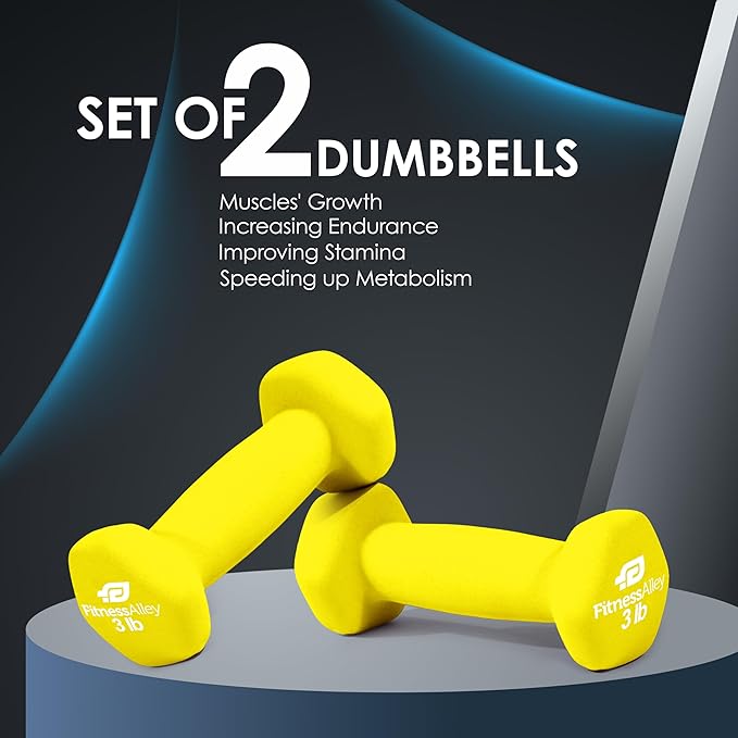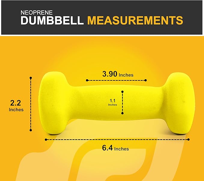 - The box includes 2 Dumbbells that comes in 3LB Size and Yellow Color. Construction is of cast iron, which is of superior quality along with neoprene gripping that allows lifting of heavyweights simpler and easier