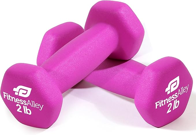 - The box includes 2 Dumbbells that comes in 2LB Size and purple Color. Construction is of cast iron, which is of superior quality along with neoprene gripping that allows lifting of heavyweights simpler and easier