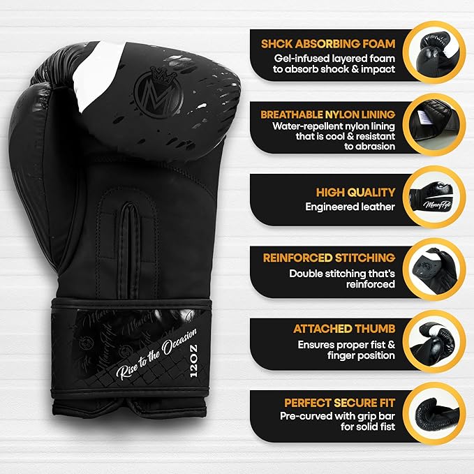- High Quality - Boxing gloves that can withstand the hardest punches during high-intensity workouts, month after month! Constructed with the highest quality engineered leather, gel-infused layered foam, and water-repellent nylon lining that is durable and resistant to abrasion