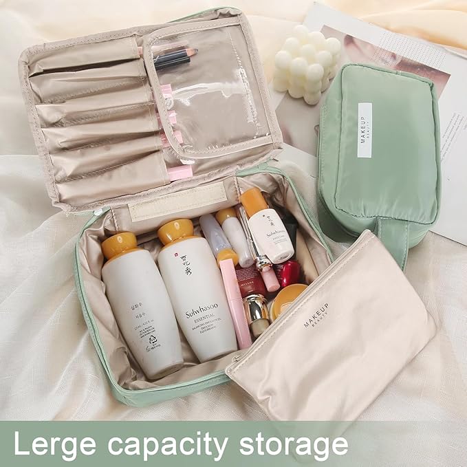 Travel Makeup Bag Cosmetic Bag Makeup Bag Toiletry bag for women and men (Green-3pcs)