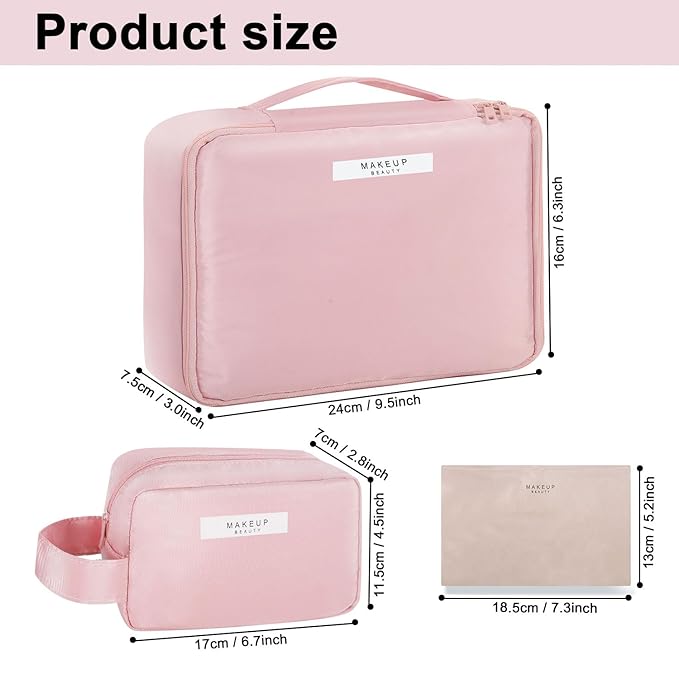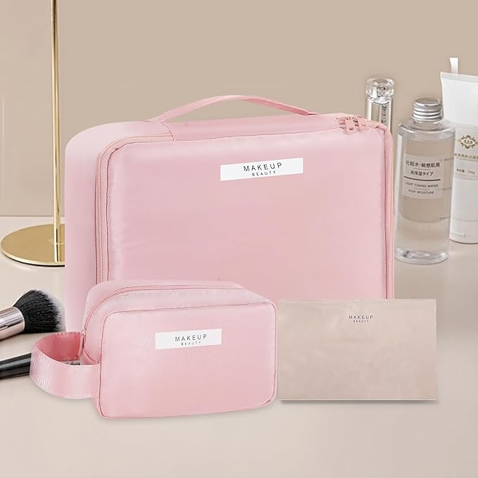 Travel Makeup Bag Cosmetic Bag Makeup Bag Toiletry bag for women and men (Pink-3pcs)