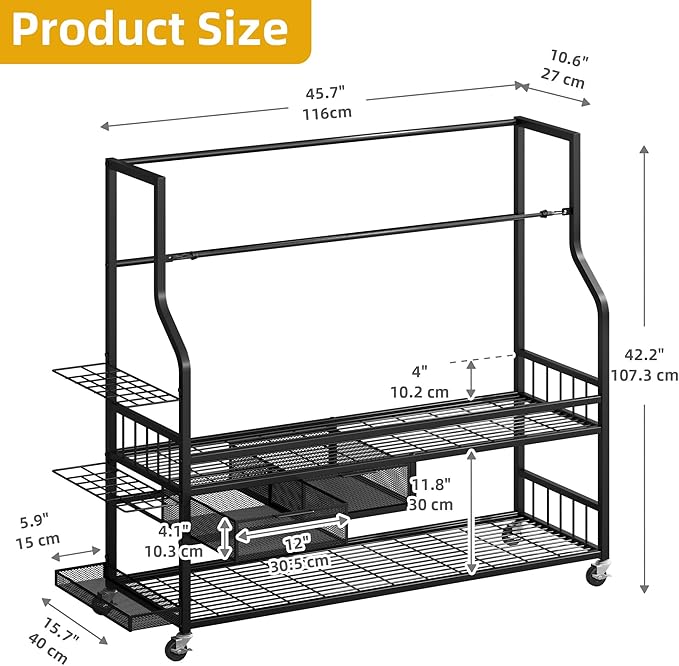 - Built to Last: Crafted from robust metal and finished with a sleek powder coating, this golf storage rack is designed to withstand the elements. It effectively resists chipping, peeling, and rusting, even with prolonged outdoor exposure