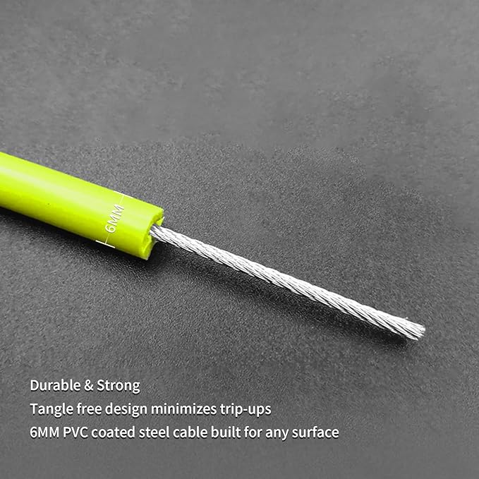 - Durability Design. 6mm PVC coated steel cable ensures durability and resistance against cracking or breaking, suitable for any surface.