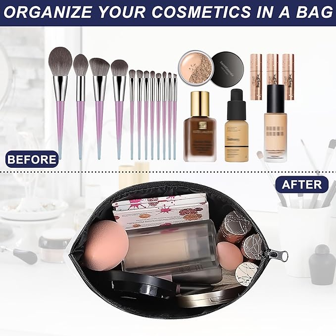 - 【Lightweight And Portable Size】9.5×5.9 inch.And the foldable design makes it easier to be folded into your suitcase. Our makeup bags are stand wear and tear and lightweight. They are made of soft polyester waterproof material,With a zipper closure for ensuring your items not easy to fall off,And easy to open and close.This fabric makes it stay sturdy all the traveling time.