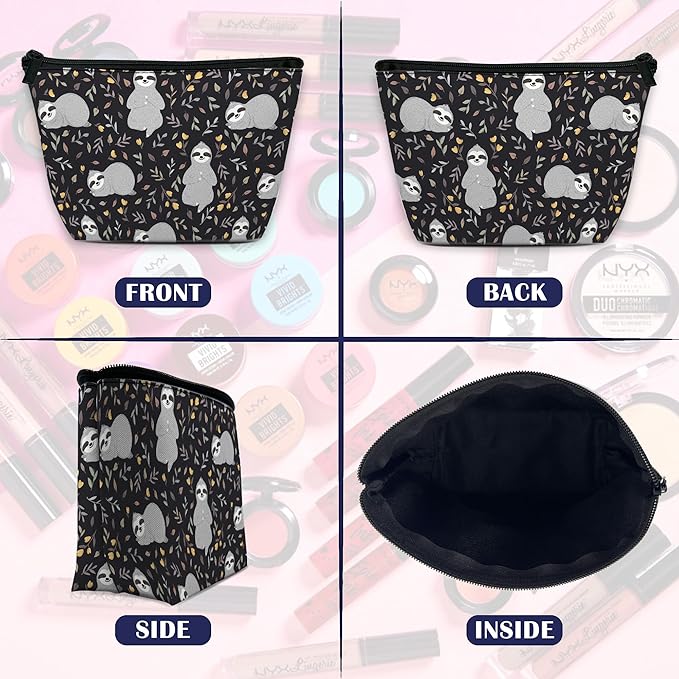 Makeup Bag for Purse, Waterproof Funny Cute Baby Sloths Leaves Cosmetic Bag for Women, Zipper Travel Toiletry Gift 9.5×5.9 Inch