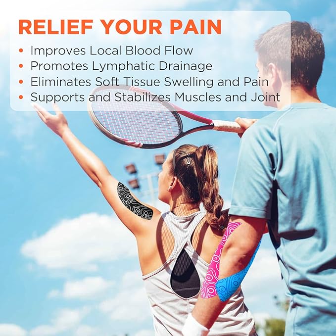 - ENHANCE ATHLETIC PERFORMANCE/MOVEMENT – When used correctly, OK TAPE helps improve local blood flow, promote lymphatic drainage, eliminate soft tissue swelling and pain, and support and stabilize muscles and joints without hindering your movement. It helps to alleviate muscle and joint pain while providing support.