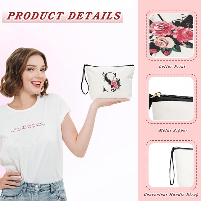 - 【PERSONALIZED FLORAL INITIAL DESIGN】This cute make up bag is printed with a personalized flower initial. There are 26 letter styles to choose from, which would be a perfect personalized gift for mother, wife, friend, female, teacher, sister, friend, grandma, girlfriend, birthday, Valentine's Day gift, Mother's Day gift, Christmas gift.