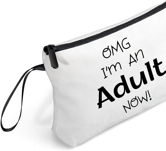 - ❤BEST 18th BIRTHDAY GIFT SET:This cute gifts combination includes a makeup bag and a small mirror.This is a perfect birthday gifts for sister from sister. The cosmetic pouch has a handle and is printed with the words "OMG I’M AN ADULT NOW!"on both sides.