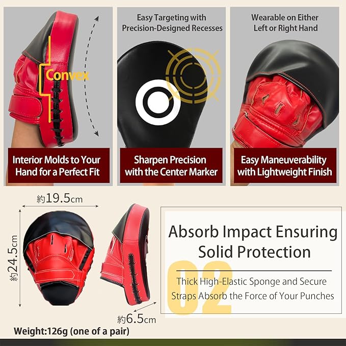 - 【COMES WITH MITTS】- Enhancing your punching technique requires cooperation from your training partner. Our punching mitts are lightweight and ergonomically curved for a comfortable, responsive hit. With a thickness of approximately 5cm, they provide an ideal balance of impact absorption and ease of use. The circular target at the center ensures precise aim, preventing punches from straying. Elevate your training sessions with mitts designed for effective and enjoyable workouts!