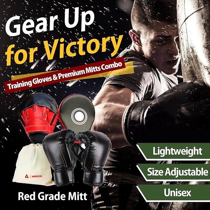 MERCIEL Pro Training Boxing Gloves and Boxing Punching Mitts for Adults – Comprehensive Boxing Set Adult Men and Women for Training, Muay Thai, MMA, Kickboxing, and Heavy Bag Work