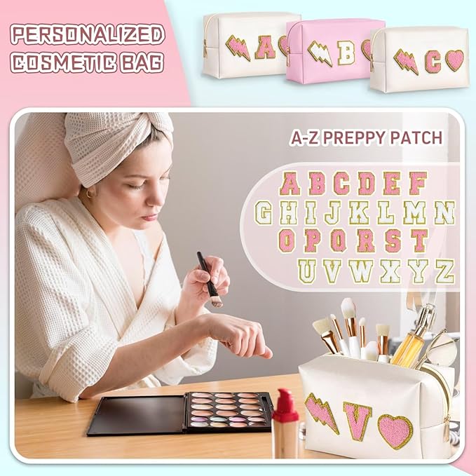 - 【Personalized Gift】Customized with initials, giving this makup bag a unique meaning. This initial makeup bag will be one-of-a-kind present for your loved ones, like your daughter, nieces, lover, sister, families, friends, colleagues, teen girls on Birthday, Valentines' day, Graduation, Christmas, and other holidays. You can never go wrong with a cute bag as a gift!