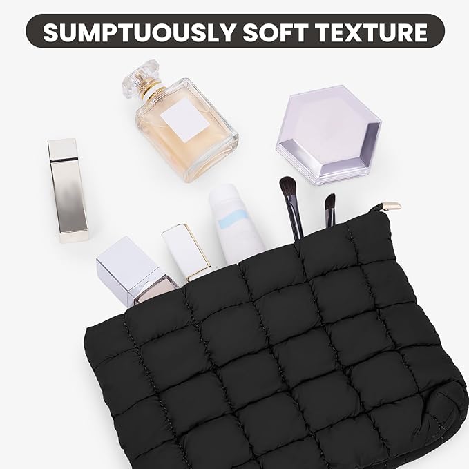 Puffy Quilted Makeup Bag Cosmetic Bags Travel Cute Puffer Solid Toiletry Organizer Pouch Storage Clutch for Women
