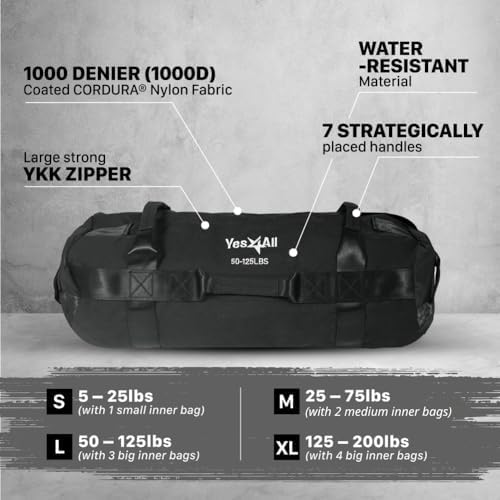 Yes4All Sandbags for Working Out, Adjustable Sand Bags for Weight Training with Handles, Multiple Colors & Sizes 5-200lbs