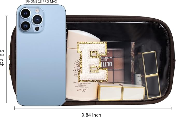 - Personalized Initial Makeup Bag for Purse:Preppy makeup bag boasts a gold glitter chenille patch that is not only stylish but also skin-friendly and comfortable to touch.It's your exclusive makeup bag.You can organizing various items such as cosmetics, lipsticks, hair accessories, snacks, and jewelry. They also work well as coin purses, providing convenient storage for daily use.