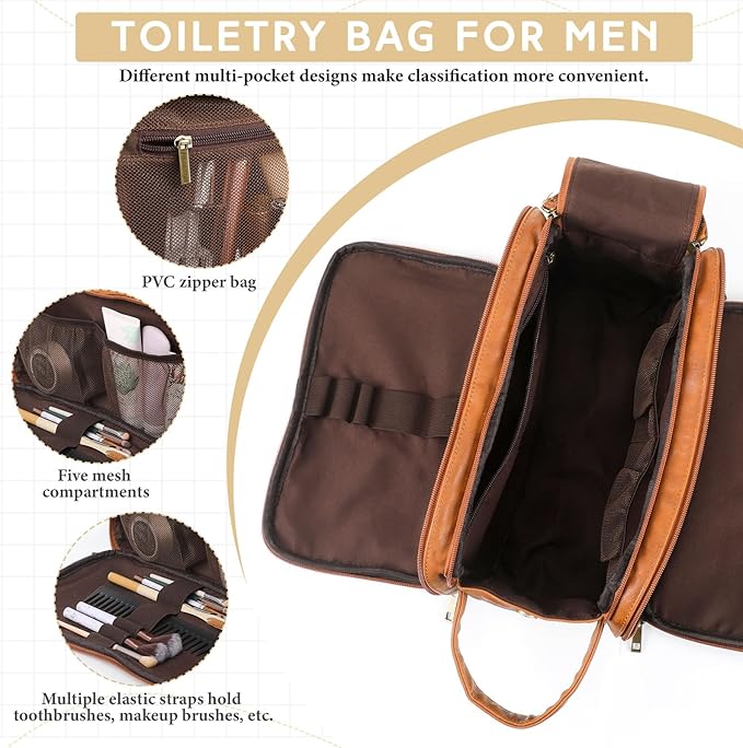 - Crafted with Reliable: the toiletry bag for men is crafted with quality PU leather, offering durability and longevity, the classic brown color adds a stylish yet elegant aesthetic appeal to meet your trendy needs, the bag is not just a toiletry bag, it is a reliable travel partner
