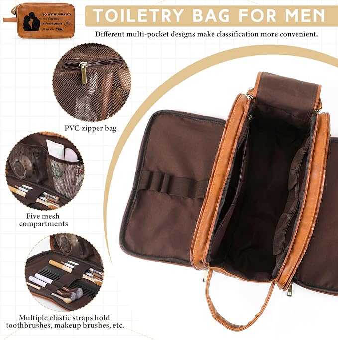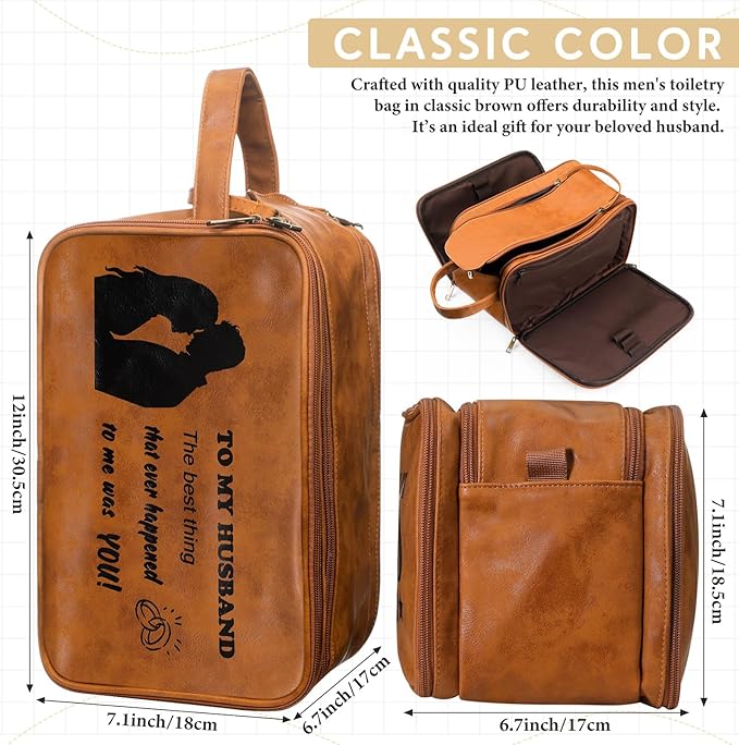 - Practical Gift: the men toiletry travel bag is a practical gift solution for husband, with its proper sizes, long lasting materials, and its stylish design, expressing the essence of the relationship between a husband and a wife, this toiletry bag goes beyond being just a simple gift