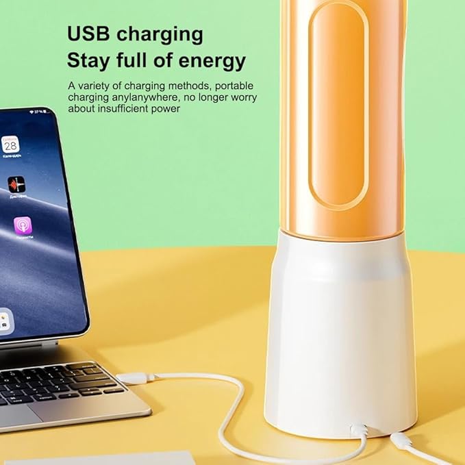 - 【Rechargeable & Large-capacity Battery】The portable blender for smoothies and shakes has a built-in 1500mAh rechargeable battery with USB Type-c port, which can be charged for 3-5 hours via mobile power, AC adapter or computer. The portable blender can make 8-12 cups of juice with one full charge (For the first time to use the blender, it must be fully charged for 3-5 hours). Enjoy a wonderful moment of personal blender for smoothies!