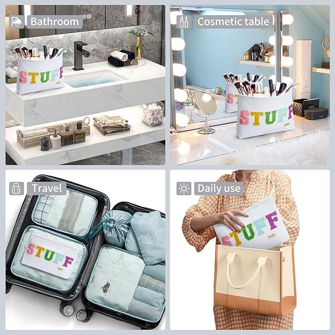 - 【MULTI-FUNCTIONAL USE】This makeup bag set includes 2 different sized bags, which can be used as a travel toiletry bag, makeup bag, cosmetic bag, pencil case, coin purse, and more, providing women with a convenient organizing and storage solution
