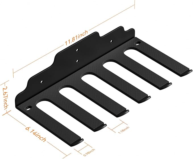 - Sturdy & Durable - The heavy-duty wall-mounted organizer is made of high quality steel plate. Then there is a thick, durable, coarse powder coating on the surface. All the fingers/combs are spaced apart to avoid overlapping, thus protecting your equipment and shelves from scratches