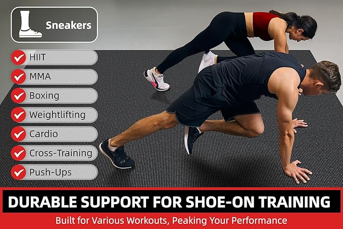 - 💪 Ideal for High-Impact Workouts, Can Be Used with Shoes: Featuring 8mm/10mm thick cushioning, our gym mats are specially designed for high-impact exercises like weightlifting, kettlebell swings, or cardio workouts. Protect your joints and floor while staying comfortable during intense training sessions.