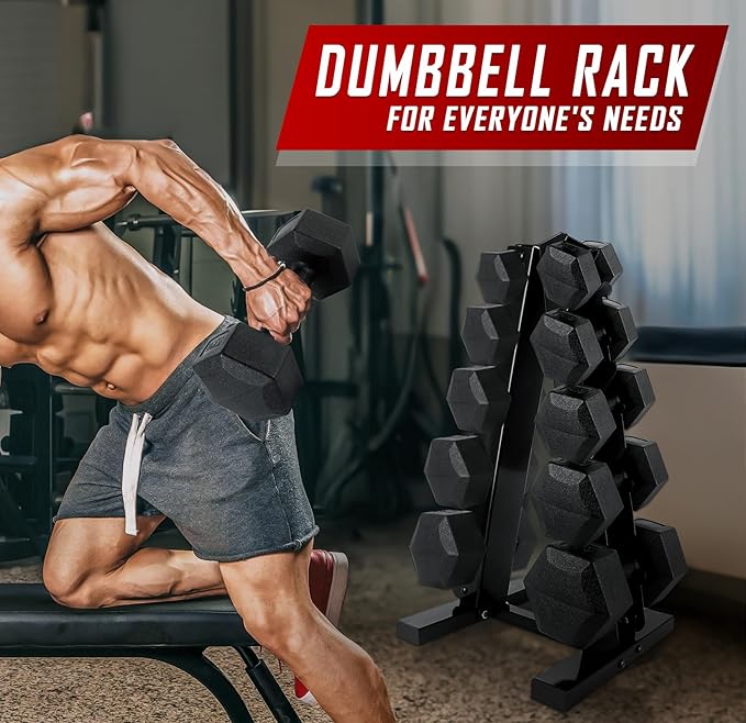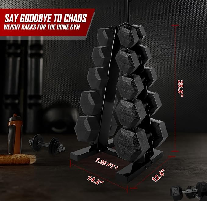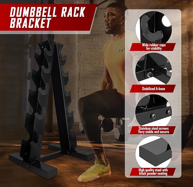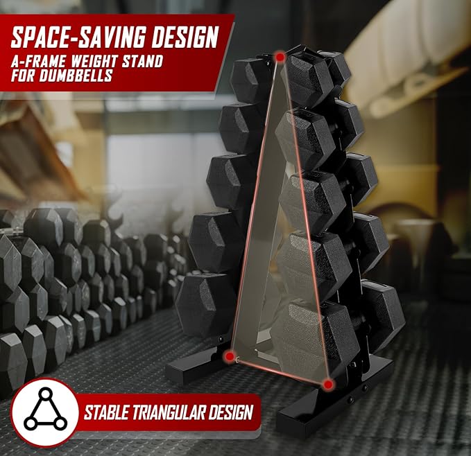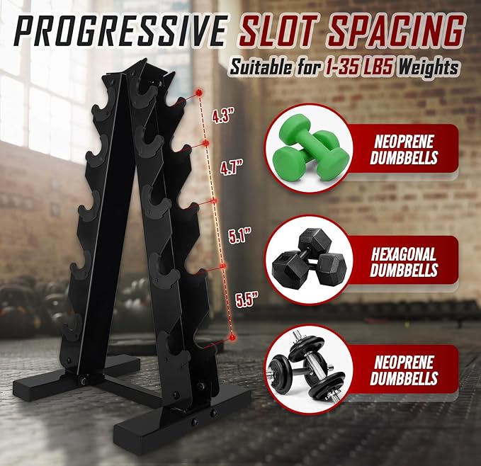 - 【Space-Saving Design】The compact and space-saving design of this dumbbell rack stand with a “A” shape progressive slot spacing design, allows you to keep your workout area organized and clutter-free, maximizing the available space in your home gym.