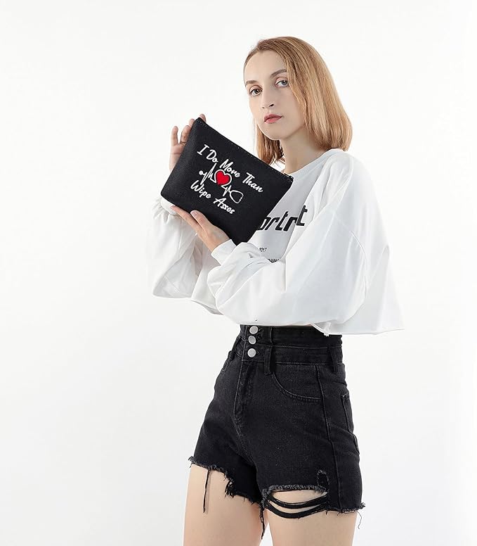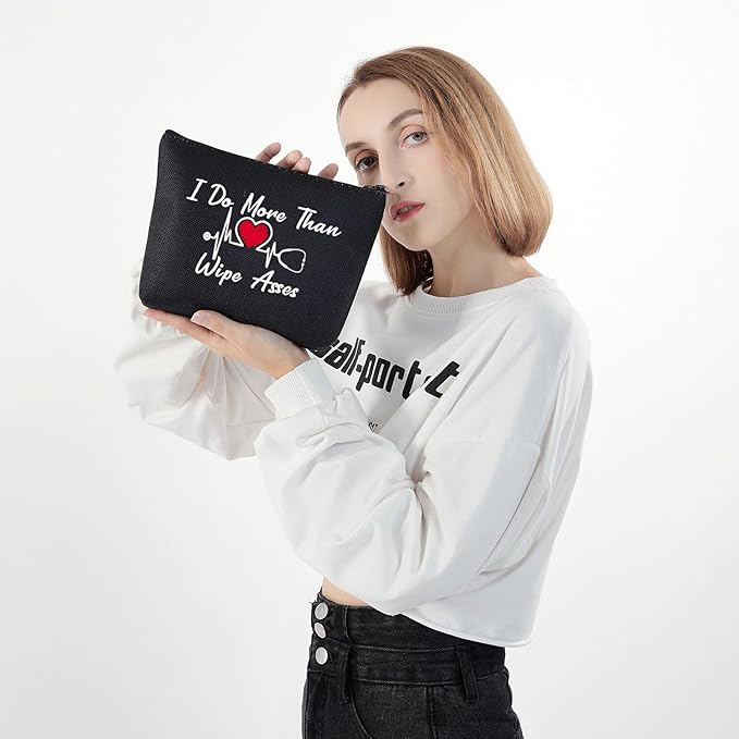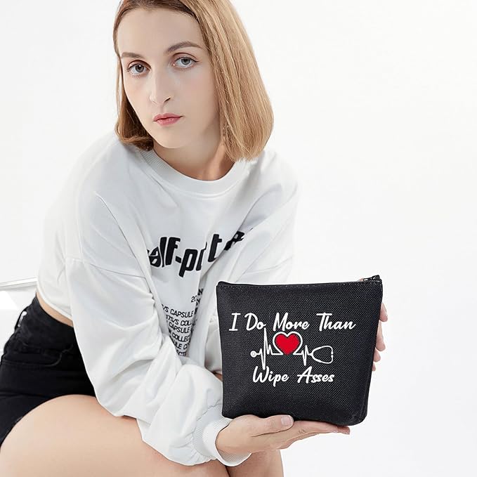BLUPARK CNA Makeup Bag Certified Nursing Assistant Gifts I Do More Than Wipe Asses Cosmetic Bag for CAN Nurse (Wipe Asses-BK)