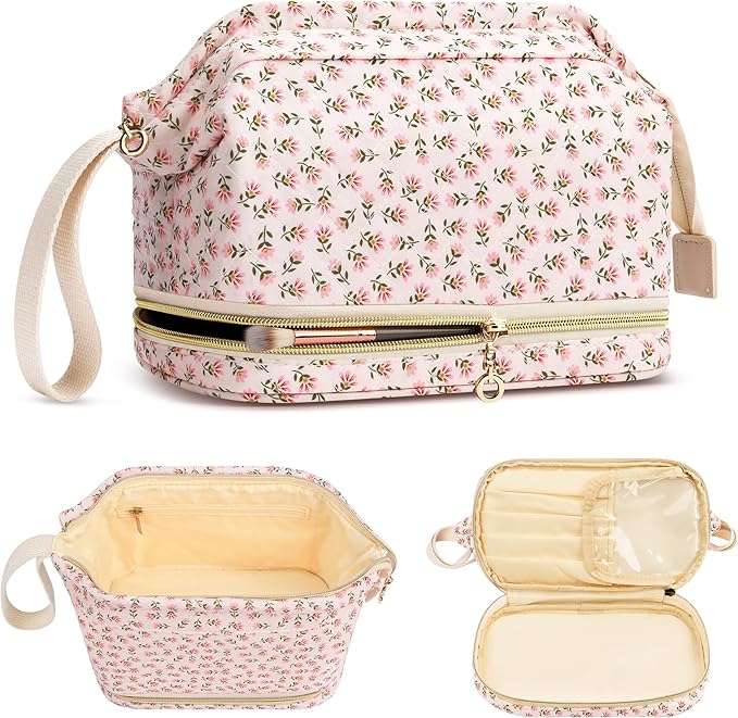 - Large Capacity: The double-layer design has a wide opening for easy access to beauty essentials and measures 9.84 x 5.5 x 6.88 inches, making it suitable for long trips or daily use.
