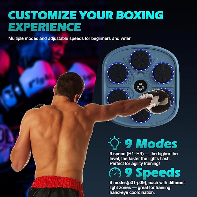 - 💎【Robust & Long-lasting】: The smart boxing music boxing machine is solid, resilient, compact, transportable, and is designed for wall installation. The cushioning is created from PU leather and foam, providing an elegant surface that's easy to clean and practical. It is designed to safeguard your hands from injuries.