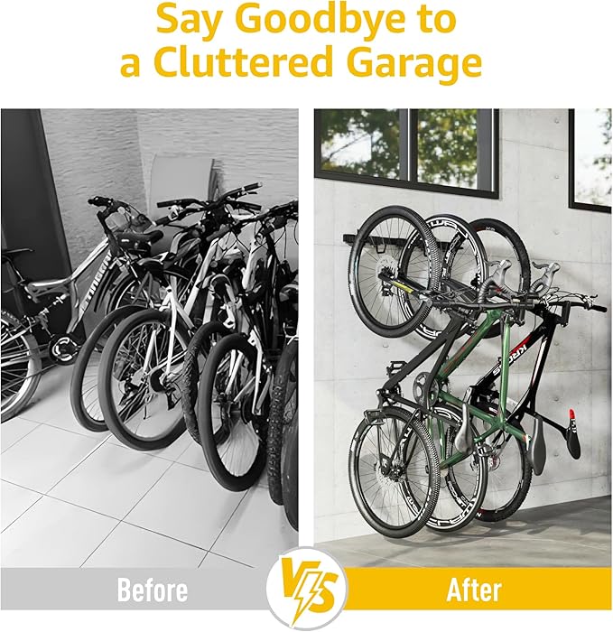 - 【EASY TO INSTALL】Installation takes just a few minutes, complete with detailed installation instructions and high-quality installation hardware. Our wall bike rack is suitable for standard 16"/18"/24" wall stud spacing. It's recommended to install the bike storage rack on a stud or solid wall; wood, brick, concrete wall, etc.