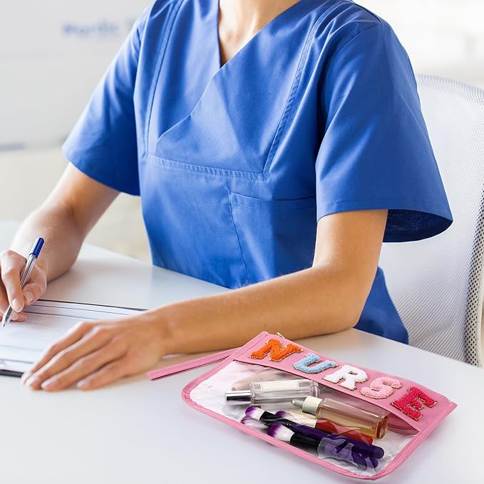 - Flat, Clear and Attaching Wrislet: the waterproof nurse chenille makeup bag features flat style, designed for better packing space in the suitcase; Clear design allows easy visualization of contents, easy to locate and access your items; The attaching wrislet is convenient for holding or wearing on the wrist, and can also be hung on the wall or door