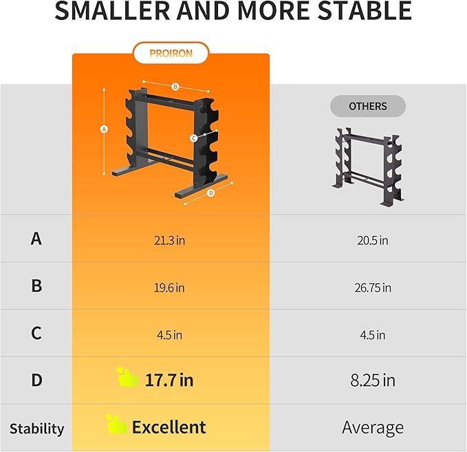 - 【HIGH STABILITY AND SAFETY】:The 450 mm (200 mm for other similar products) long steel tube base ensures high stability and safety. Our dumbbell racks are reinforced with a powder-coated, strong outer layer to withstand the impact of heavy equipment.