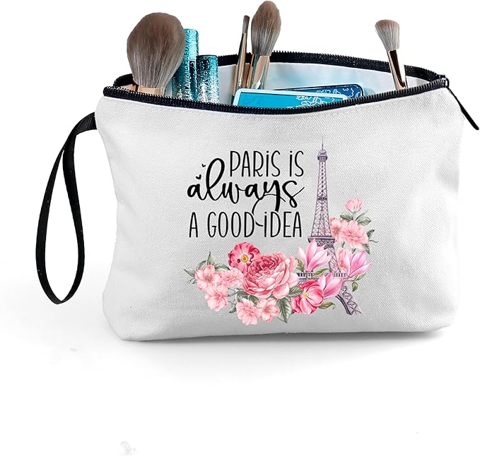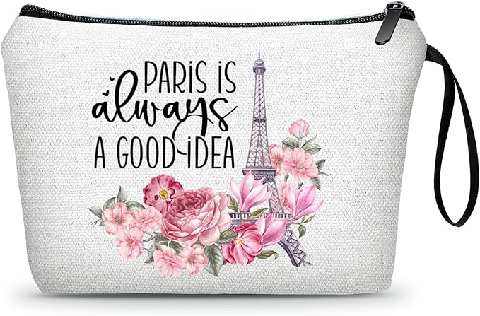 - ❤BEST TRAVEL GIFT:This is a perfect friendship gift for your best friends. The cosmetic bag has a handle and is printed with the words "PARIS IS ALWAYS A GOOD IDEA" on both sides.