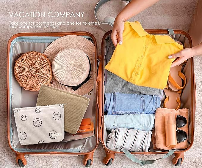 Corduroy Makeup Bag Cosmestic Bag Large Capacity Ladies Women Aesthetic Make Up Organizer Accessories Zipper Pouch Purse (Beige+Light Khaki)