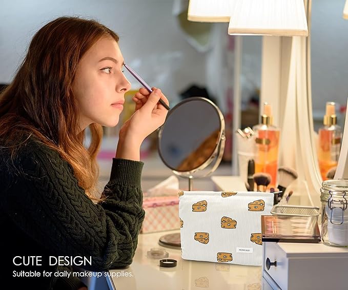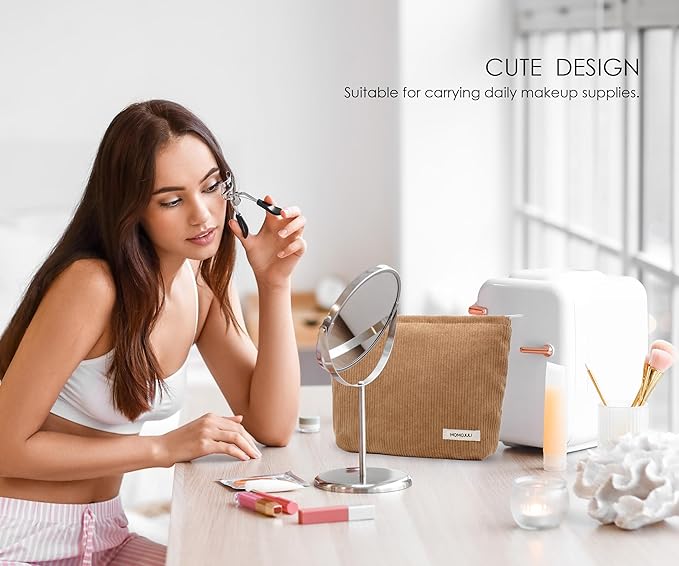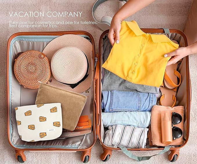 Corduroy Makeup Bag Cosmestic Bag Large Capacity Ladies Women Aesthetic Make Up Organizer Accessories Zipper Pouch Purse (Khaki+Beige Cheese)