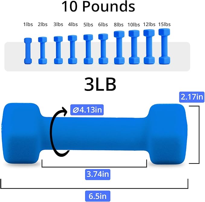 Portzon Weights Dumbbells 10 Colors Options Compatible with Set of 2 Neoprene Dumbbells Set,1-15 LB, Anti-Slip, Anti-roll, Hex Shape for Shoulder,Neck, and Hand Training for Seniors