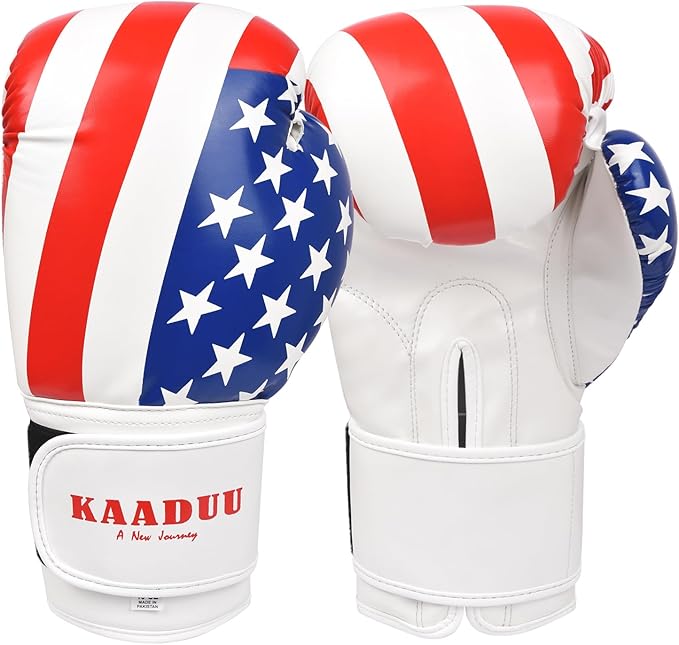 USA Flag Boxing Gloves for Men & Women, Boxing Training Gloves, Kickboxing Gloves, Sparring Punching Gloves, Heavy Bag Workout Gloves for Boxing, Muay Thai, American Flag Boxing Gloves