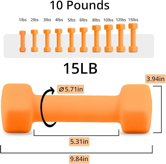 Portzon Weights Dumbbells 10 Colors Options Compatible with Set of 2 Neoprene Dumbbells Set,1-15 LB, Anti-Slip, Anti-roll, Hex Shape for Shoulder,Neck, and Hand Training for Seniors