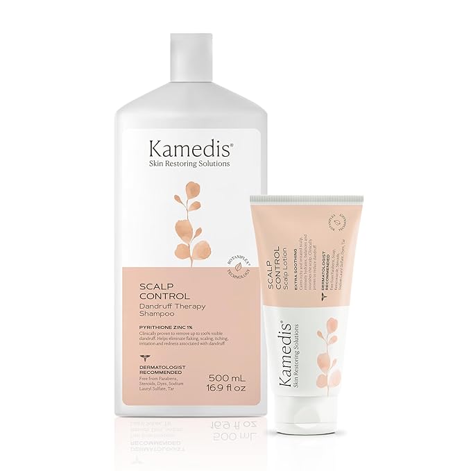 KAMEDIS Anti-Dandruff Therapy Shampoo 16.9 Fl Oz. & Botanical Moisturizer Over-Night Scalp Lotion 3.3 Fl Oz. - Remedy For Dry, Itchy, Flaky, Seborrheic Dermatitis and Sensitive Scalp