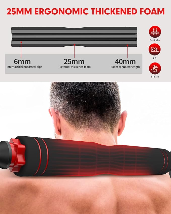 • 20MM Thickened Foam:The connecting rod is made of a 5mm thick steel tube + 20mm thick high-quality foam. Curved design fits the neck, which is non-slip and sweat-absorbing, soft and breathable, bringing a more comfortable exercise experience to you