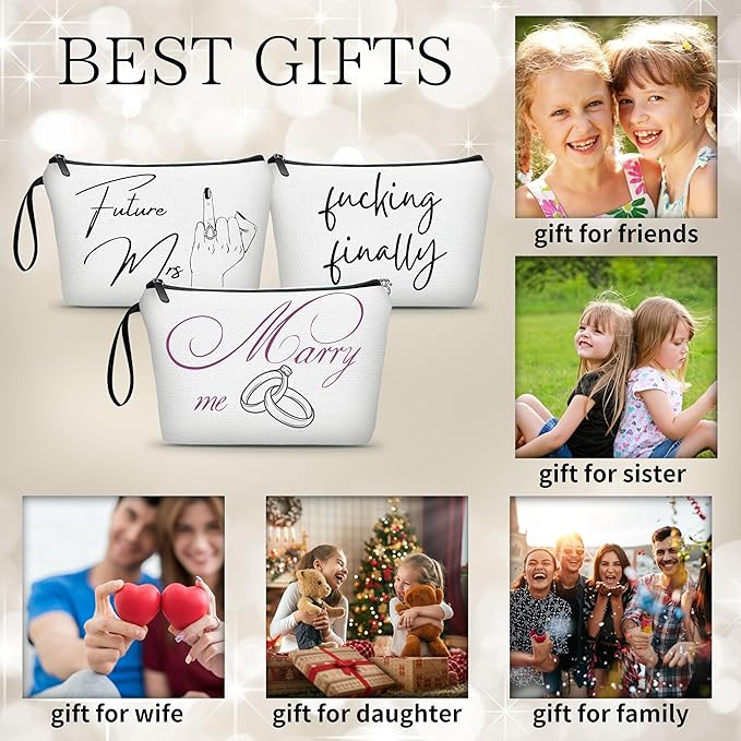 - Best Bride Gifts Ideas: This is a beautiful makeup bag that can be given as a gift to bride.The cosmetic makeup bag is printed on both sides with a meaningful blessing "Future Mrs" paired with a suitable pattern,which is a special and exquisite engagement gift