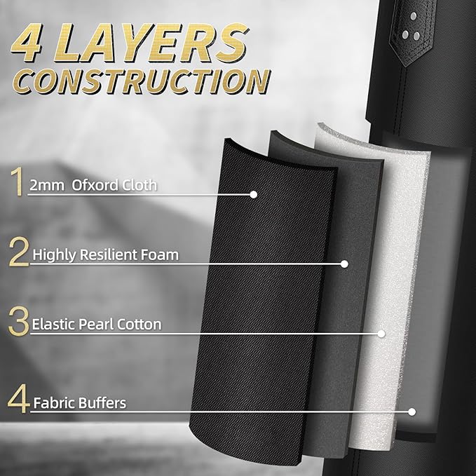- 【Sturdy Punching Bag】Crafted with comfort and durability in mind, this 4ft punching bag is made of thick oxford cloth and PU with multi-layer shock absorption foam structure. It is ready to withstand your most powerful punches and kicks while protecting wrist and joints