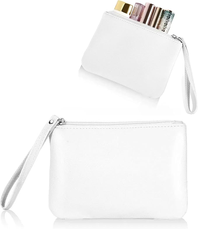 Small Makeup Bag for Purse Mini Cosmetic Pouch Zipper Little Wristlet, Tiny Make Up Organizer Lipstick Feminine Product Car Change Coin Holder for Women, 4.5 x 6.5 Clutch Stadium Approved, 1 White
