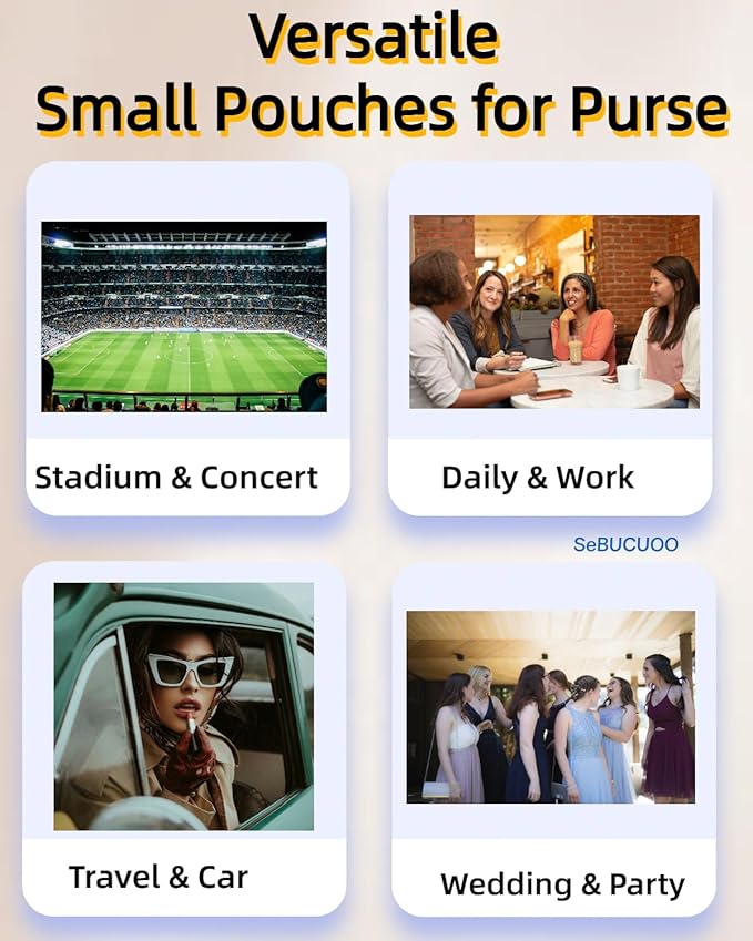 - Small Zipper Pouch for Purse: Ditch the bulky bag! The 4.5 x 6.5 clutch stadium purse is compact enough to fit in larger everyday purse while providing ample space for mini purse essentials items on the go, (Note: Cannot hold a Cell Phone)