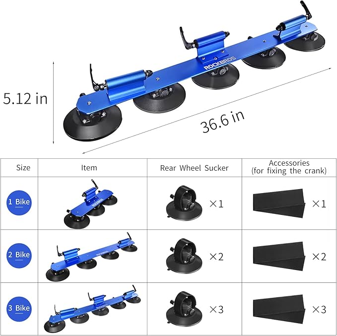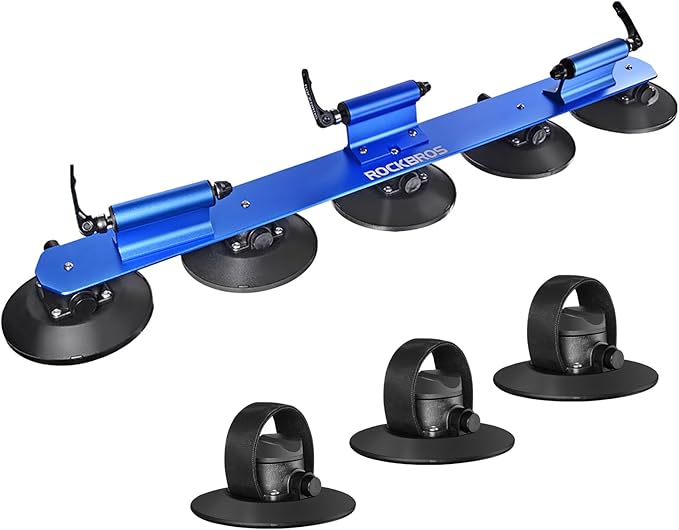 ROCKBROS Suction Cup Bike Rack for Car Roof Top Sucker Bike Rack Quick Release Aluminium Alloy Bike Carrier with Sucker for 3 Bikes Blue